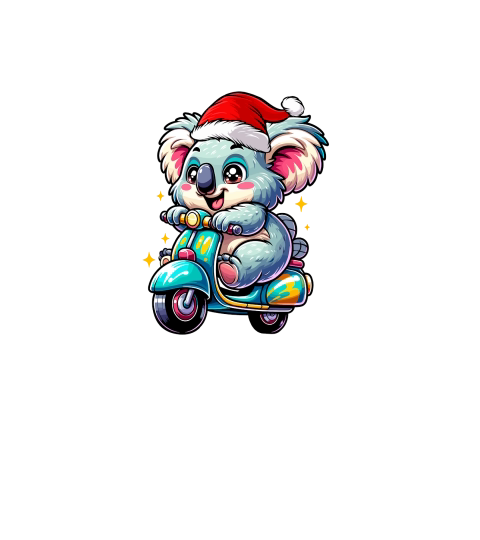 adorable Koala Riding Scooter wearing santa hat 1