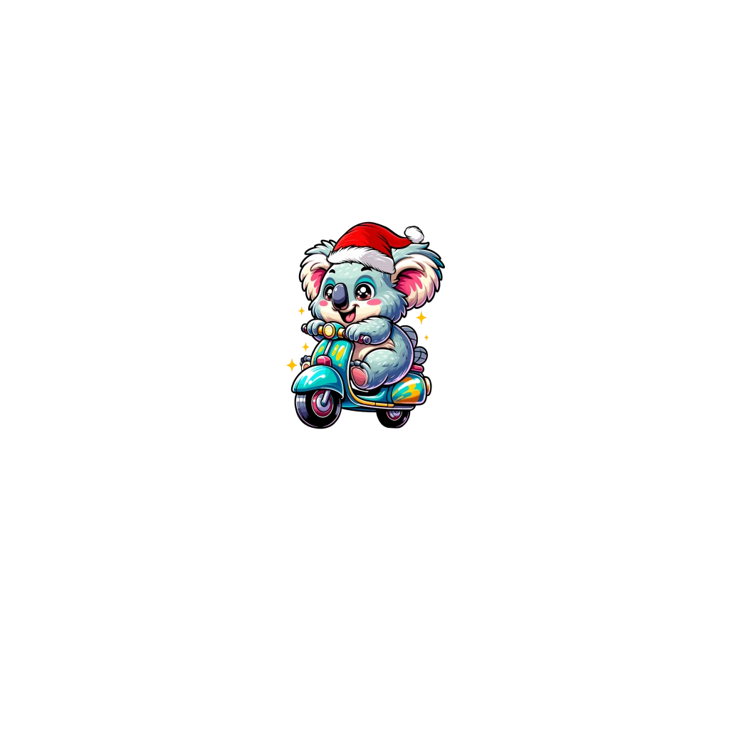 adorable Koala Riding Scooter wearing santa hat 1