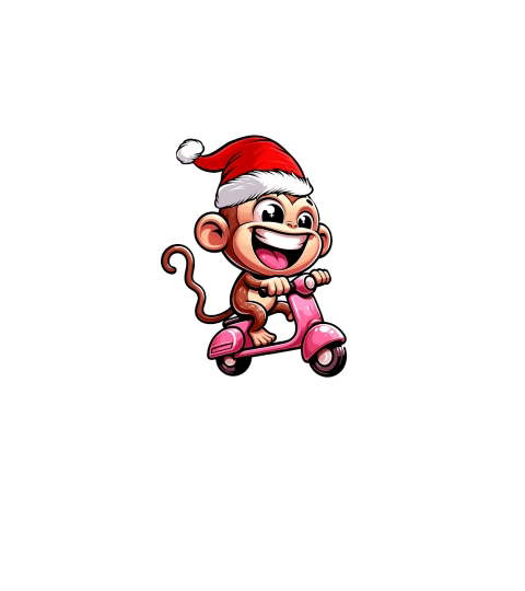 adorable monkey Riding Scooter wearing santa hat 1