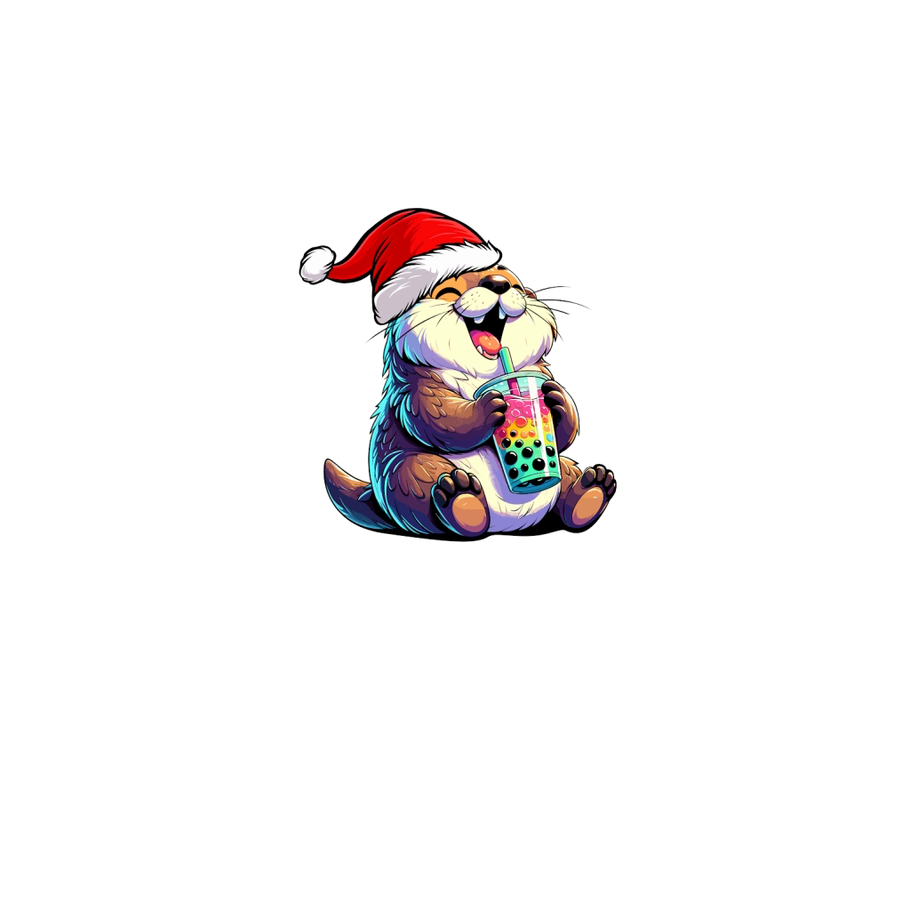 adorable otter drinking boba tea wearing santa hat 1