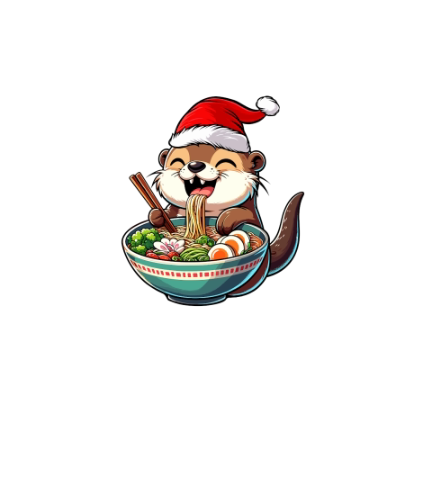 adorable otter eating ramen wearing santa hat 1