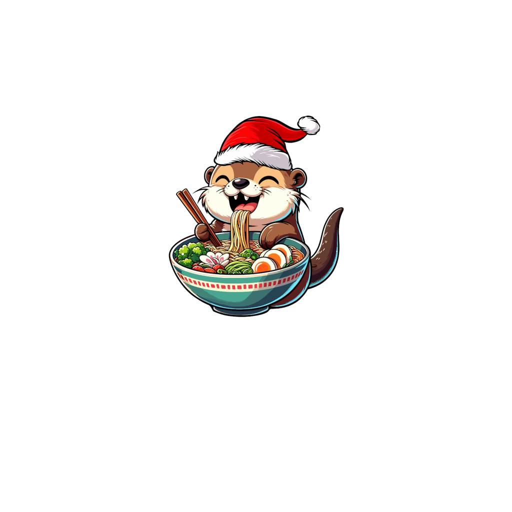 adorable otter eating ramen wearing santa hat 1