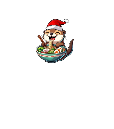 adorable otter eating ramen wearing santa hat 1