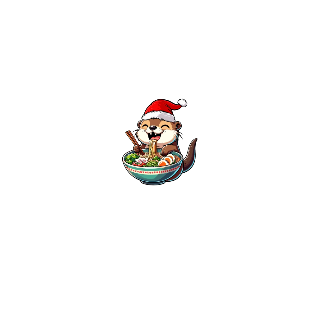 adorable otter eating ramen wearing santa hat 1