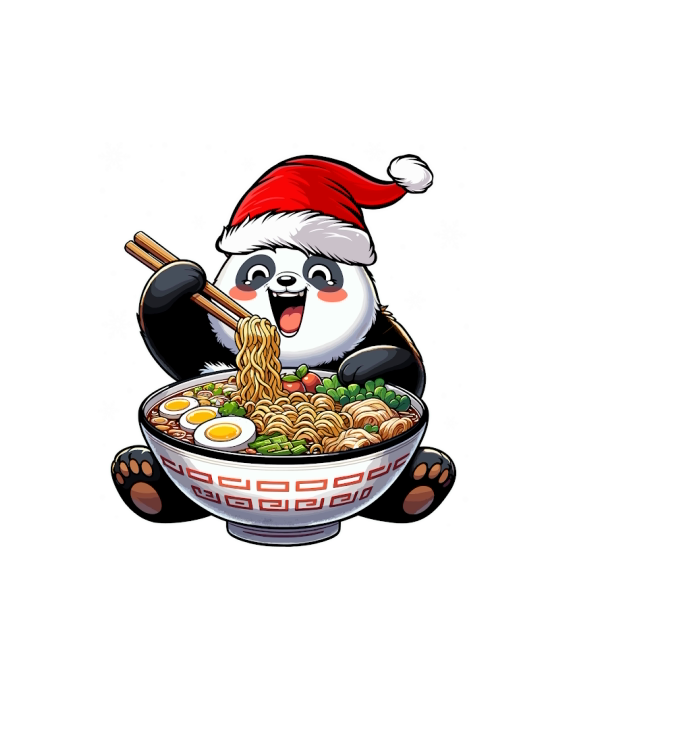 adorable panda eating ramen wearing santa hat 1