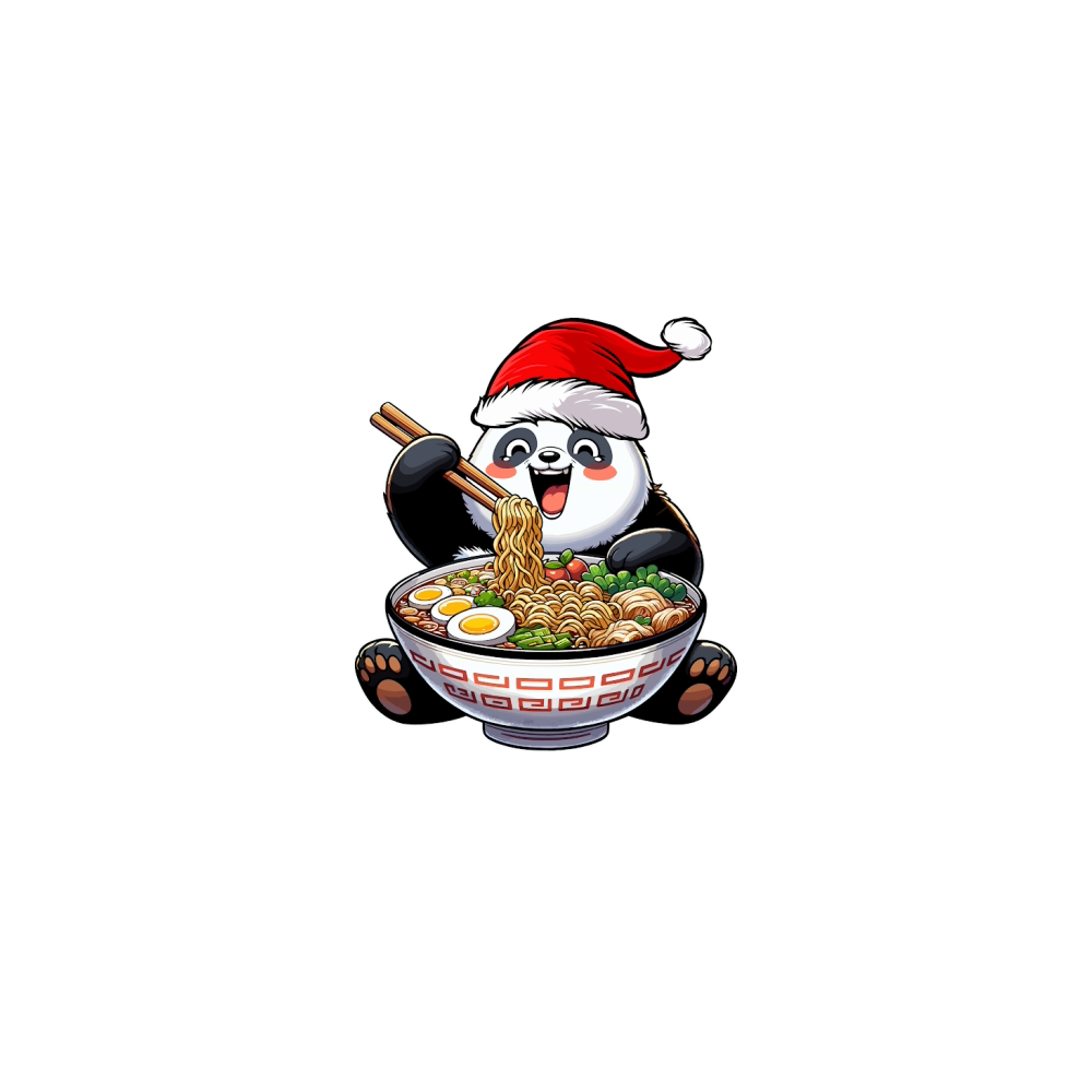 adorable panda eating ramen wearing santa hat 1