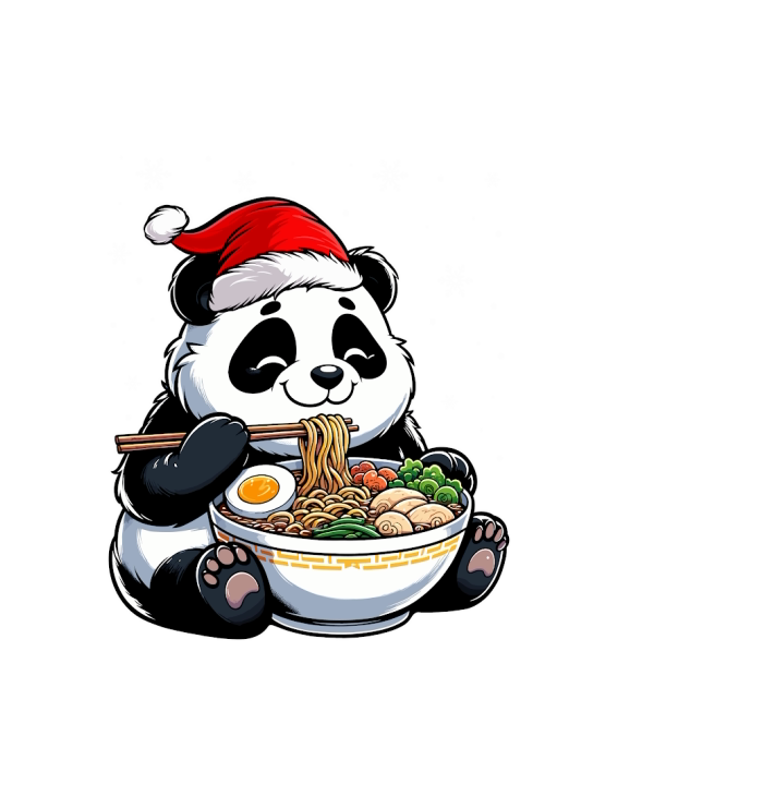 adorable panda eating ramen wearing santa hat 3