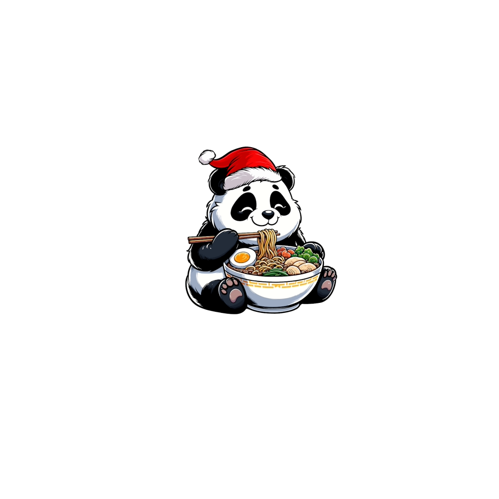 adorable panda eating ramen wearing santa hat 3