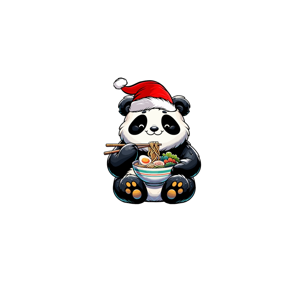 adorable panda eating ramen wearing santa hat 5