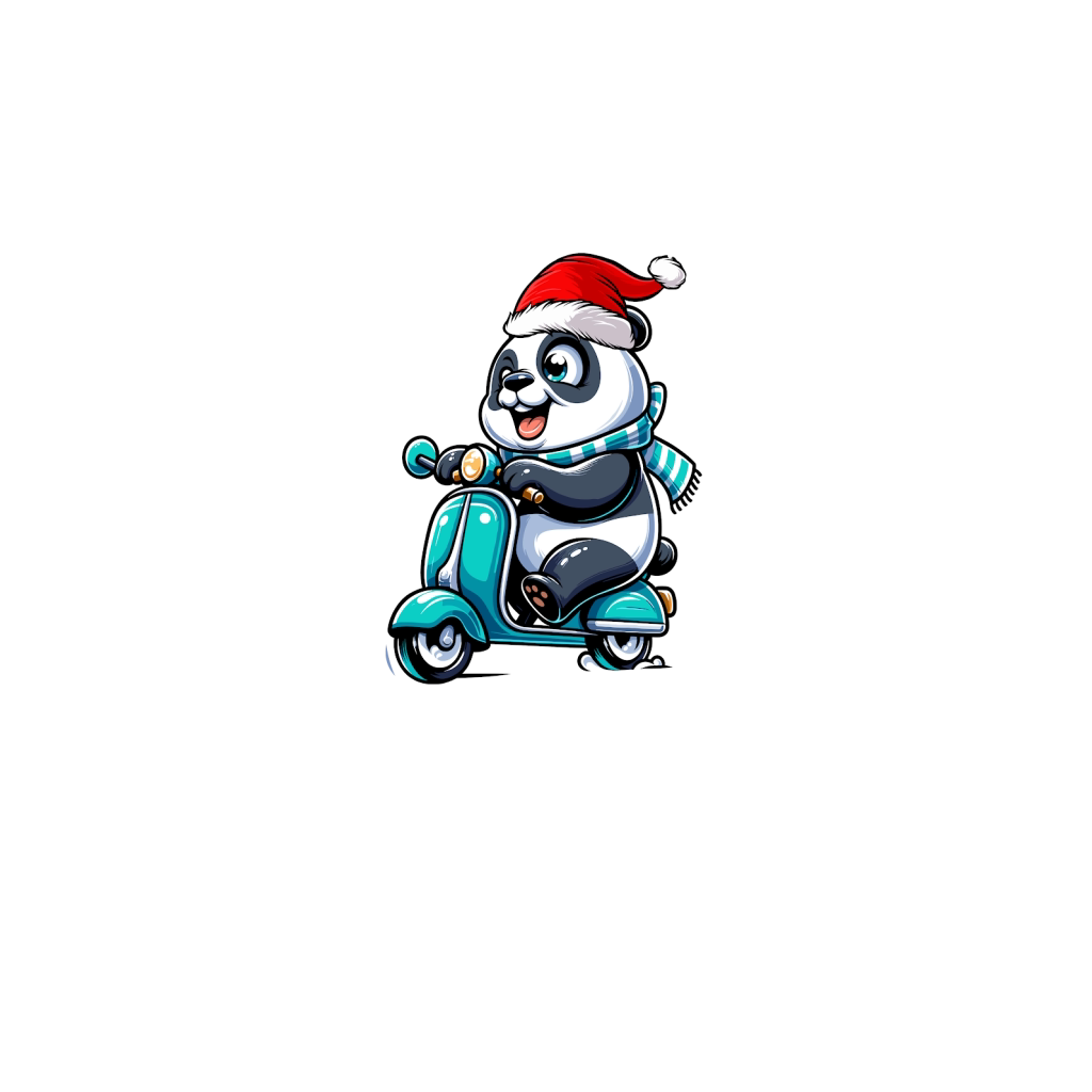 adorable panda Riding Scooter wearing santa hat 1