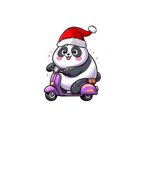 adorable panda Riding Scooter wearing santa hat 2