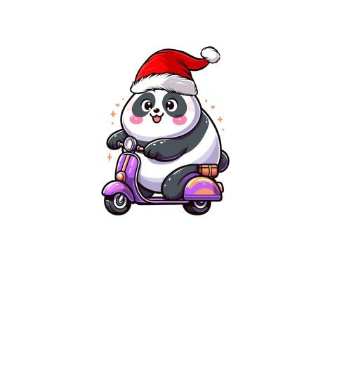 adorable panda Riding Scooter wearing santa hat 2