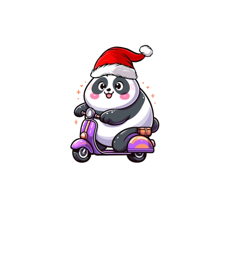 adorable panda Riding Scooter wearing santa hat 2