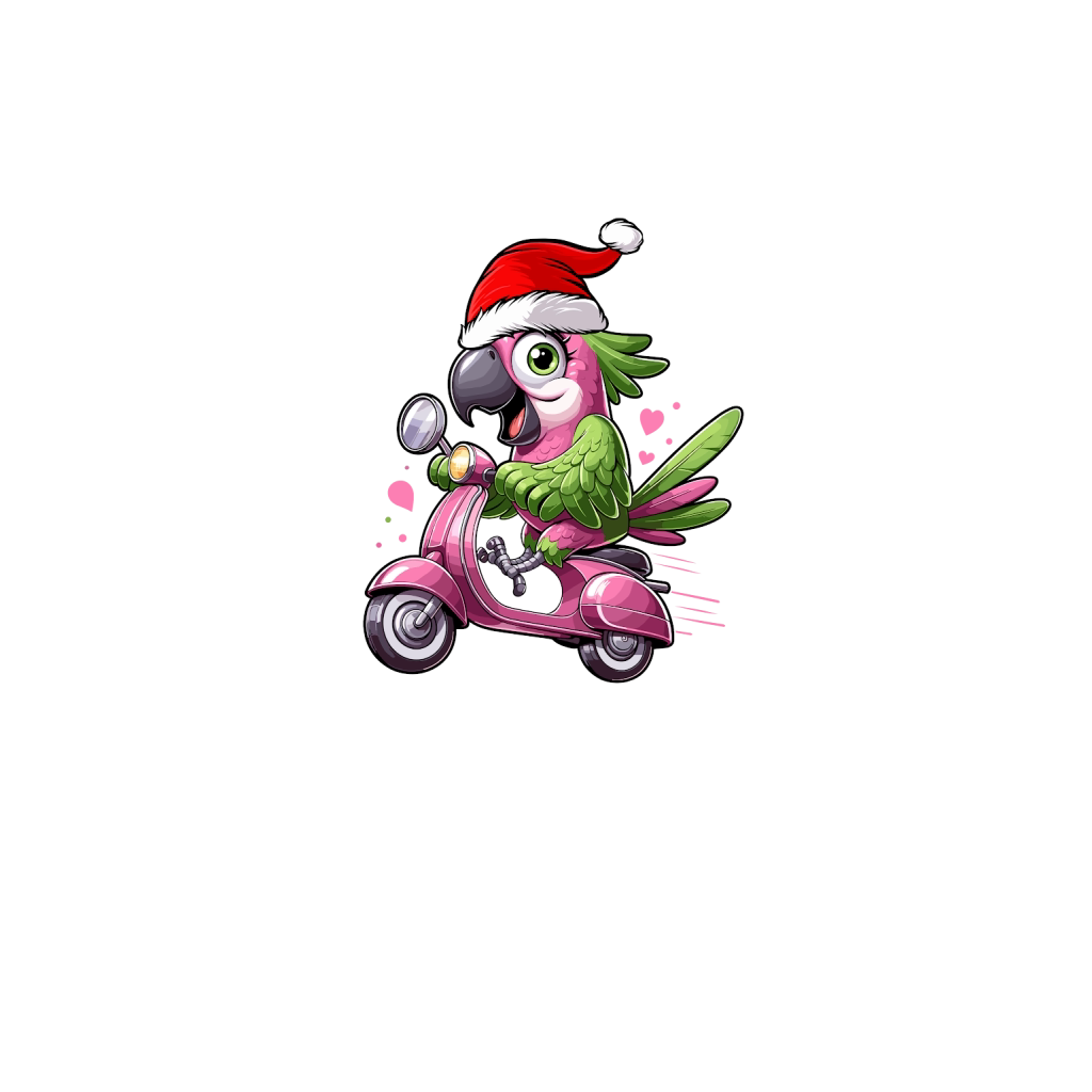 adorable parrot Riding Scooter wearing santa hat 2
