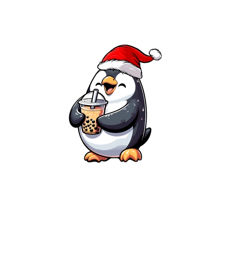 adorable penguin drinking boba tea wearing santa hat 1