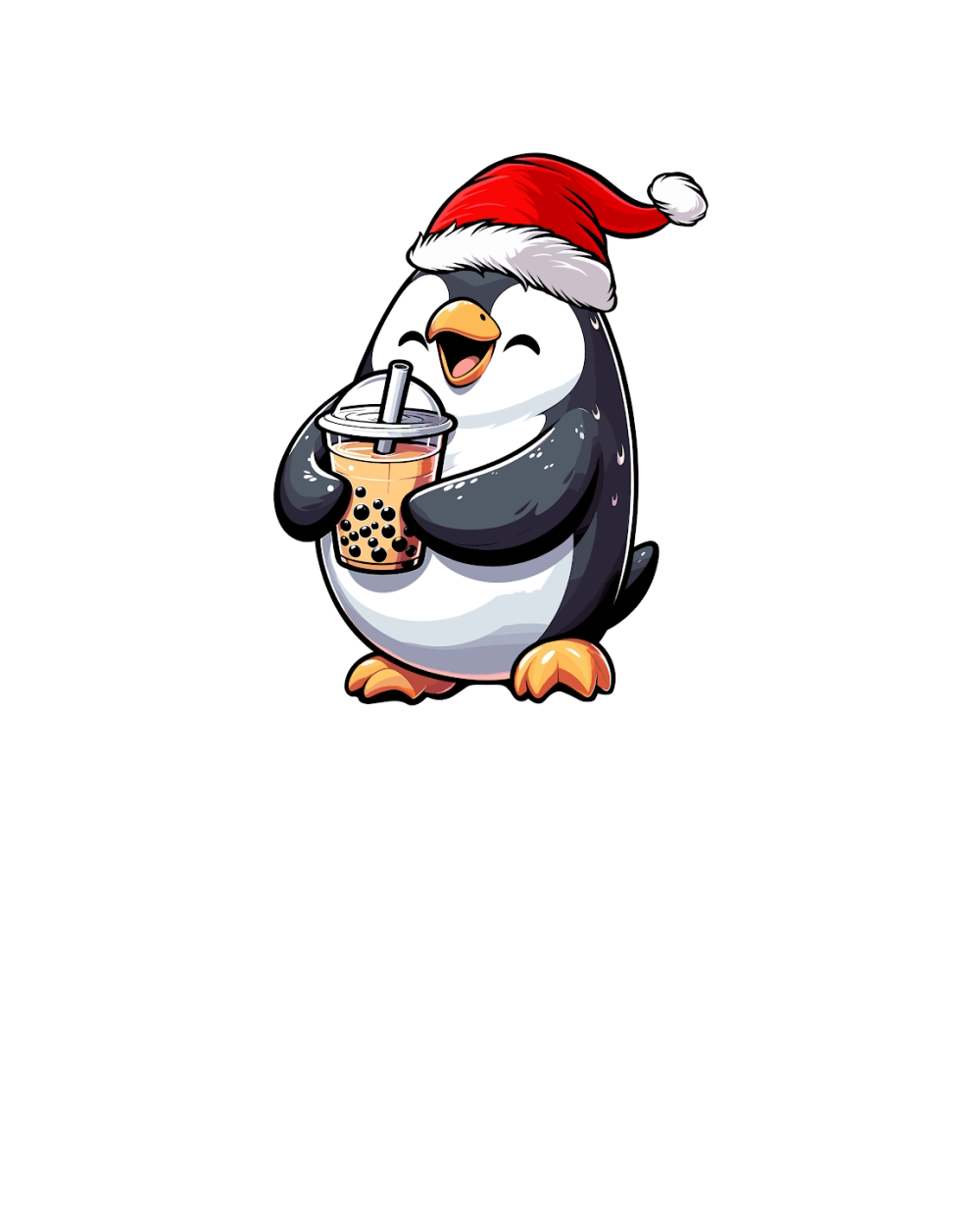 adorable penguin drinking boba tea wearing santa hat 1