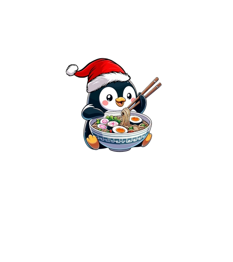 adorable penguin eating ramen wearing santa hat 1