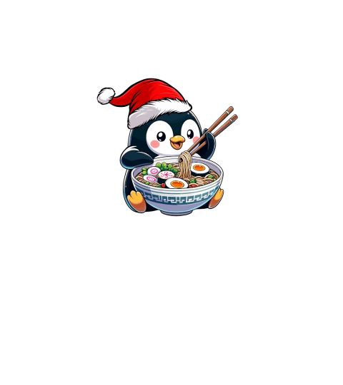 adorable penguin eating ramen wearing santa hat 1