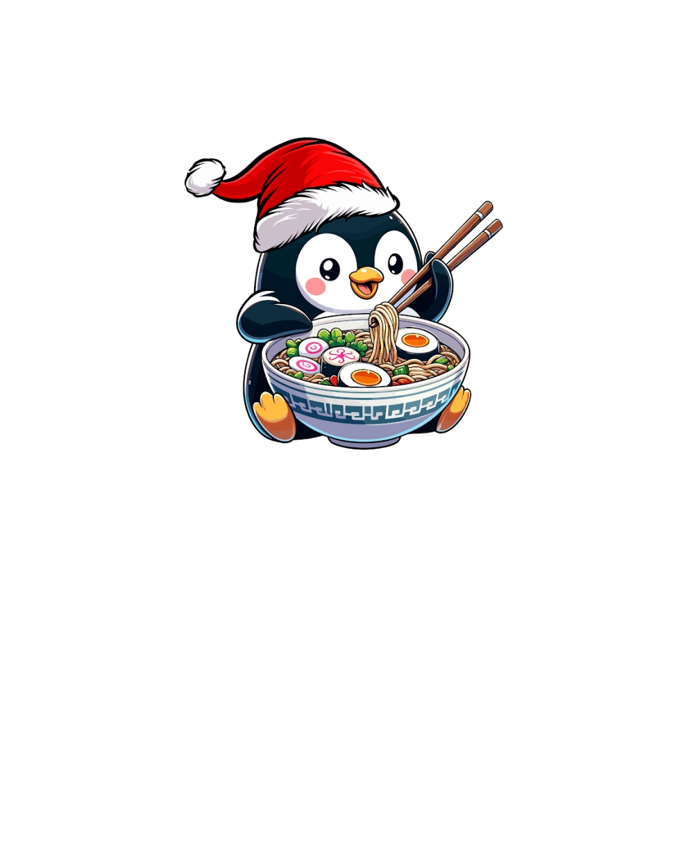adorable penguin eating ramen wearing santa hat 1