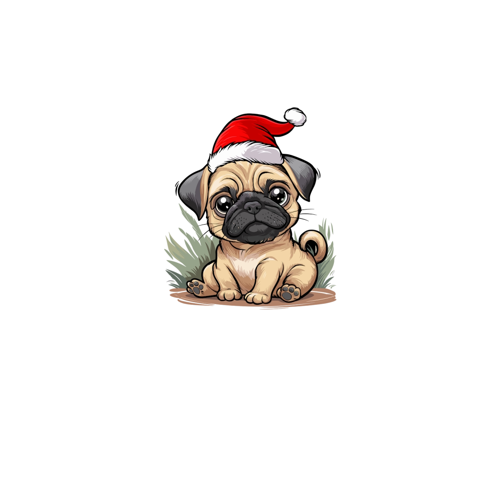 adorable pug dog wearing santa hat