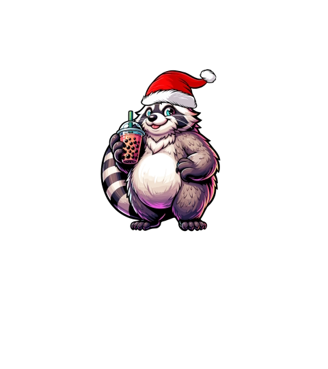 adorable Raccon drinking boba tea wearing santa hat 1