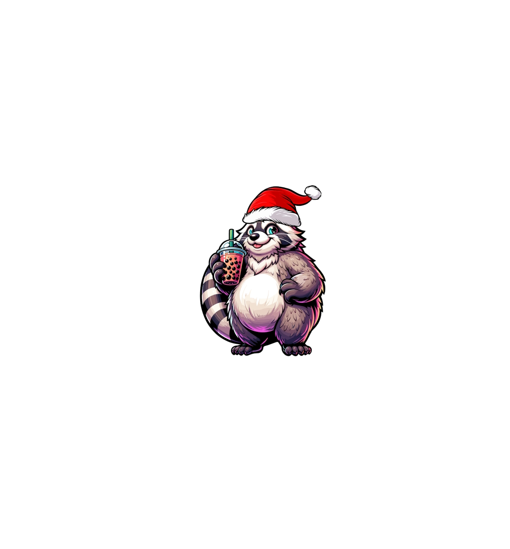 adorable Raccon drinking boba tea wearing santa hat 1