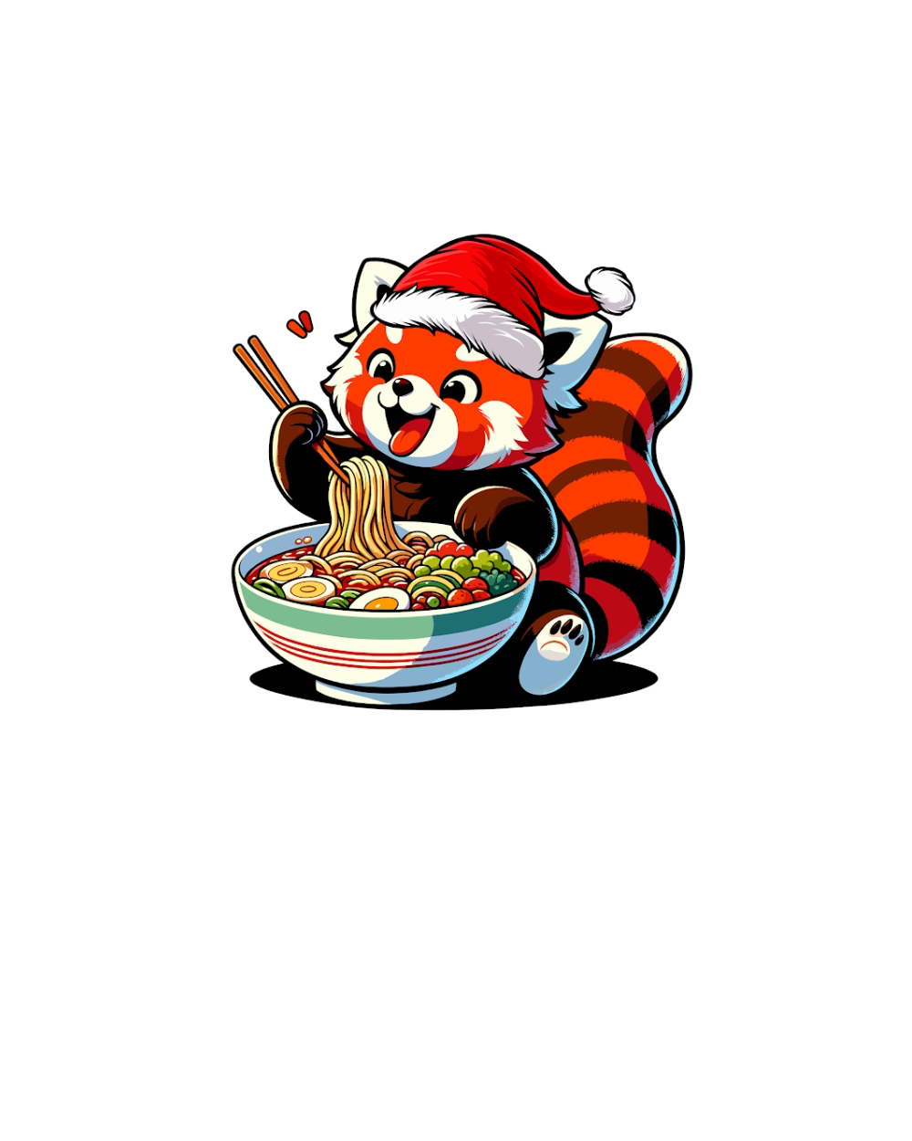 adorable red panda eating ramen wearing santa hat 1