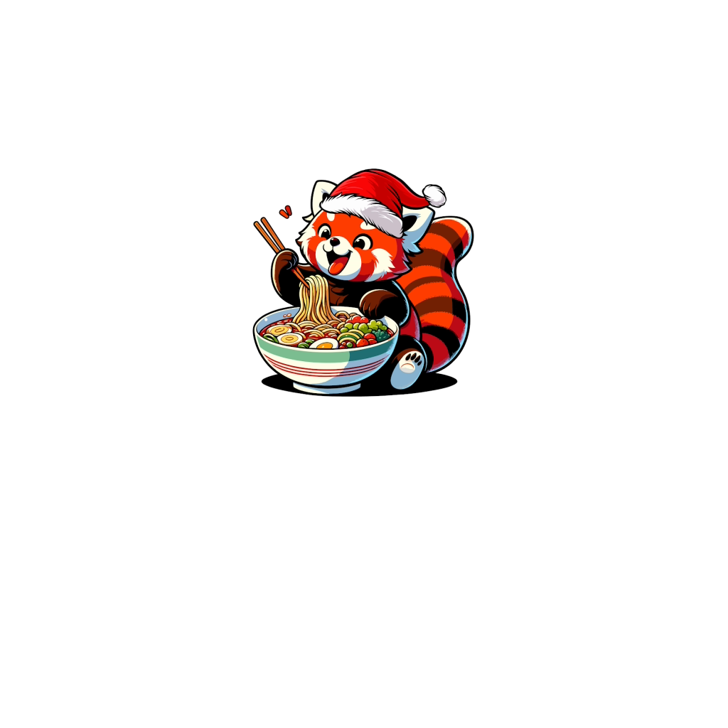 adorable red panda eating ramen wearing santa hat 1