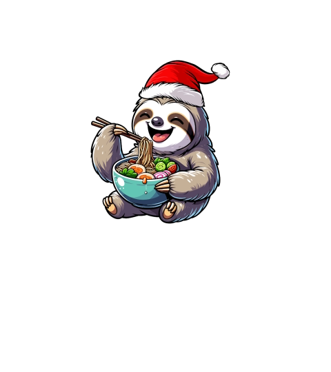 adorable sloth eating ramen wearing santa hat 1