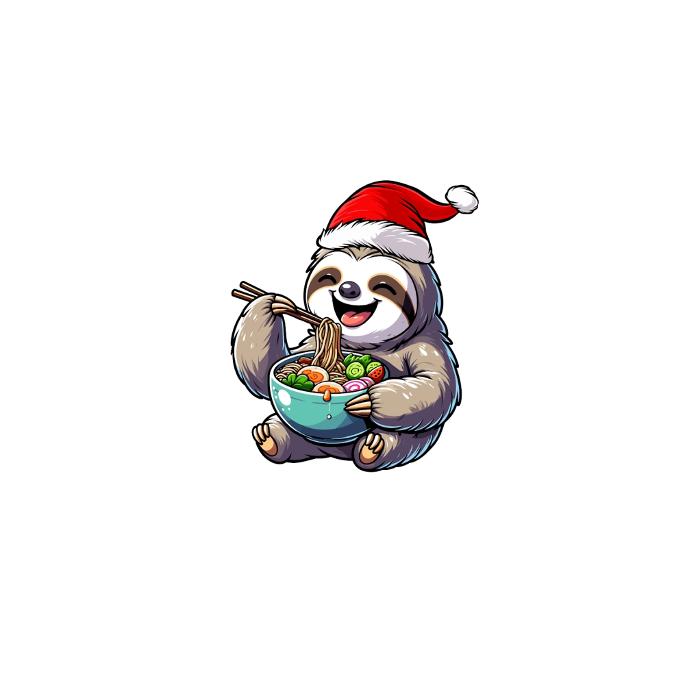 adorable sloth eating ramen wearing santa hat 1
