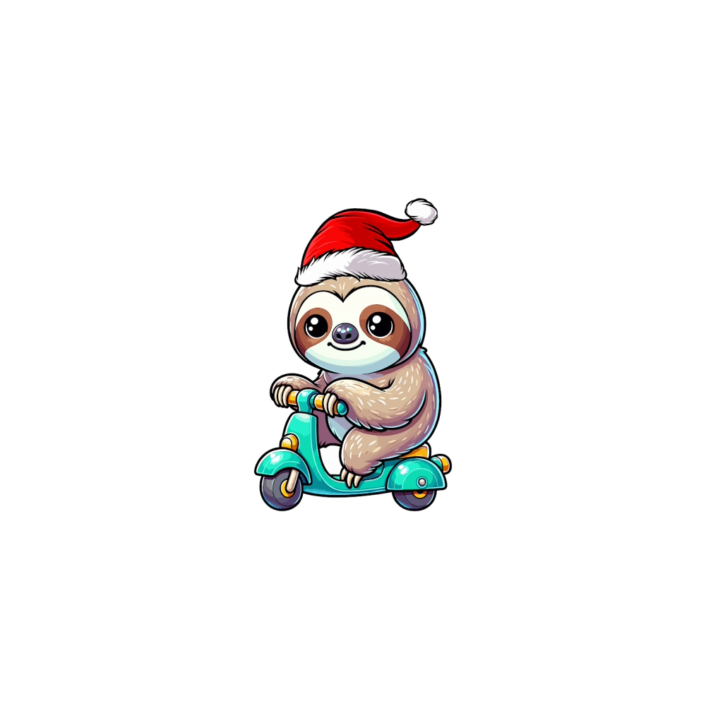 adorable sloth Riding Scooter wearing santa hat 1