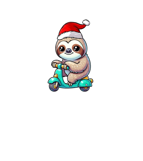 adorable sloth Riding Scooter wearing santa hat 1