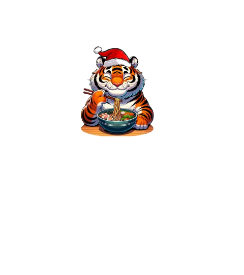 adorable tiger eating ramen wearing santa hat 1