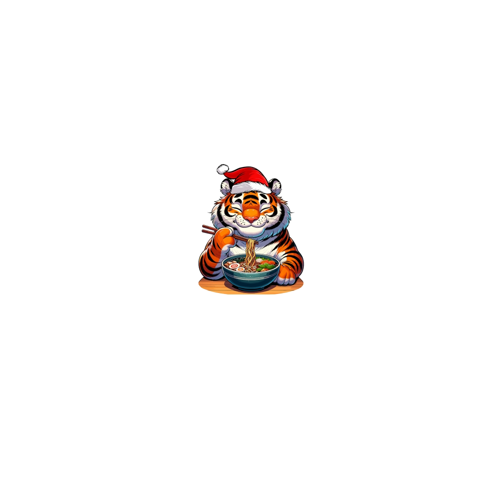 adorable tiger eating ramen wearing santa hat 1