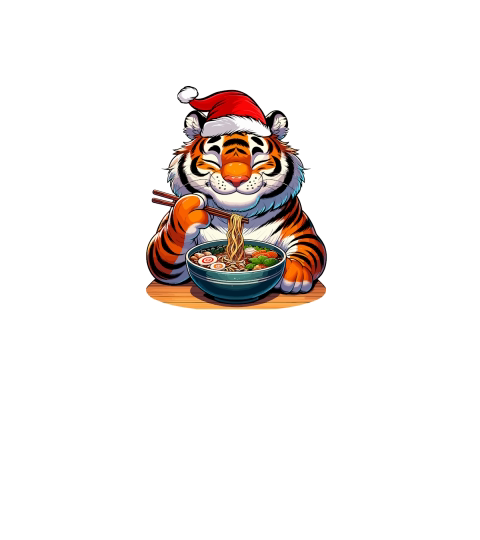 adorable tiger eating ramen wearing santa hat 1
