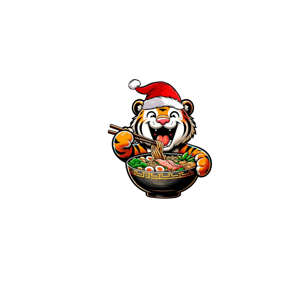 adorable tiger eating ramen wearing santa hat 2