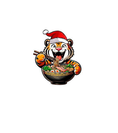 adorable tiger eating ramen wearing santa hat 2