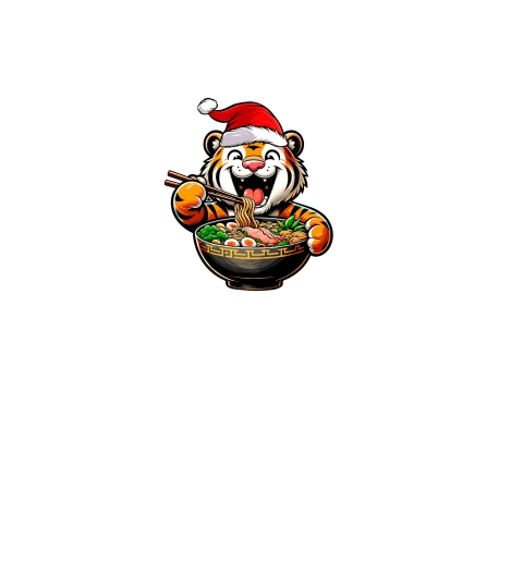 adorable tiger eating ramen wearing santa hat 2