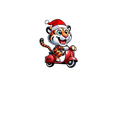 adorable tiger Riding Scooter wearing santa hat 1