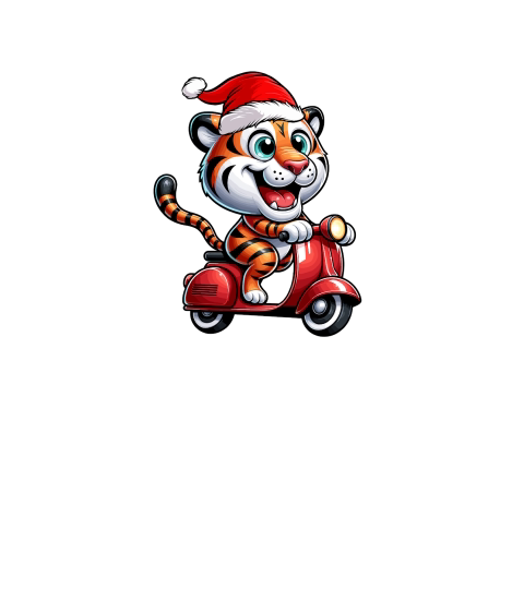 adorable tiger Riding Scooter wearing santa hat 1