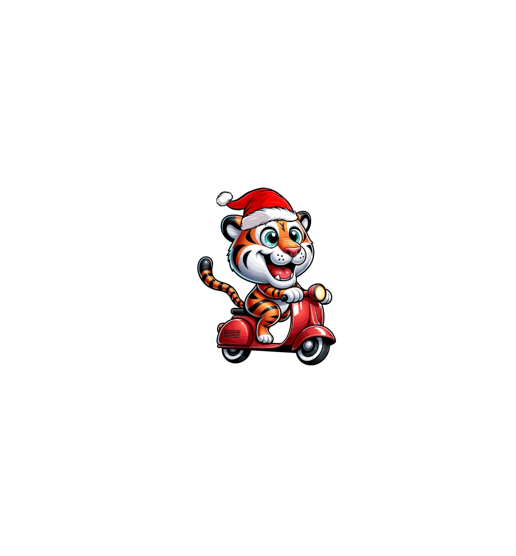 adorable tiger Riding Scooter wearing santa hat 1
