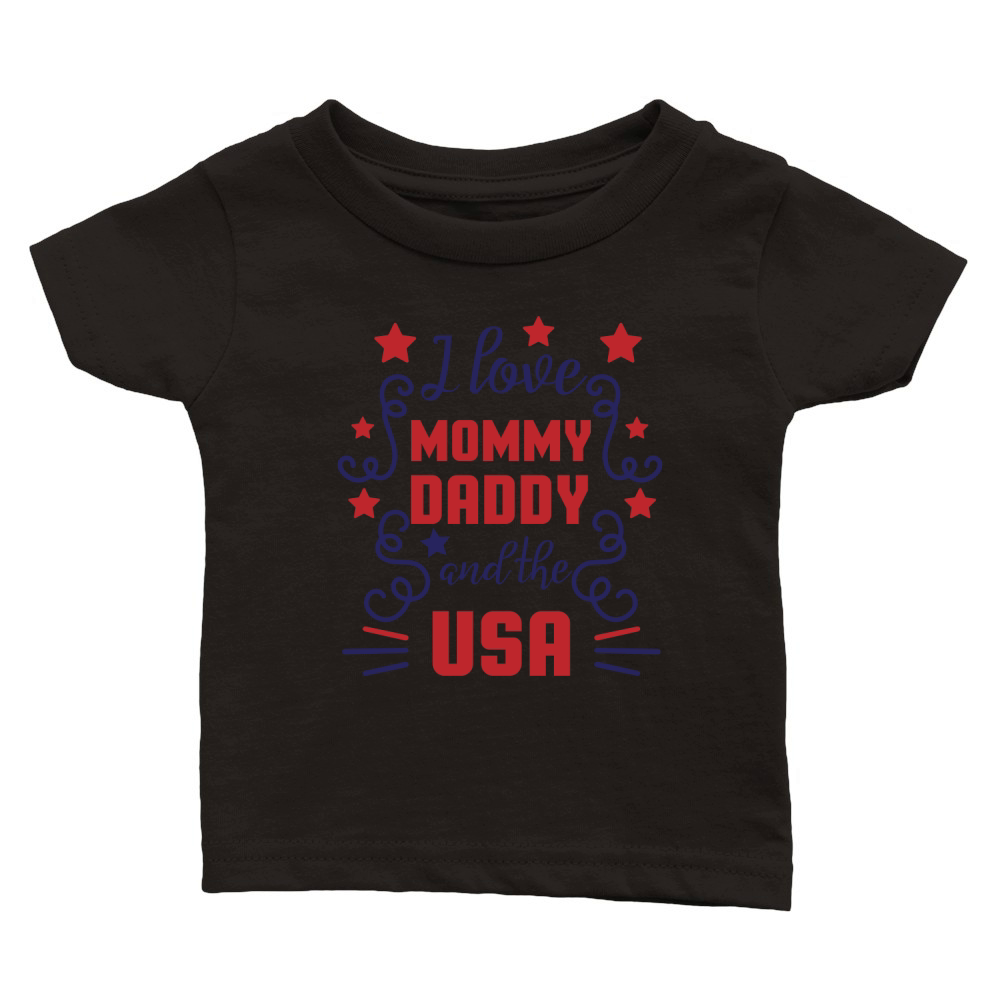 Shop I love mommy daddy and the usa Classic Baby Crewneck T-shirt custom made just for you. Available on many styles, sizes, and colors.