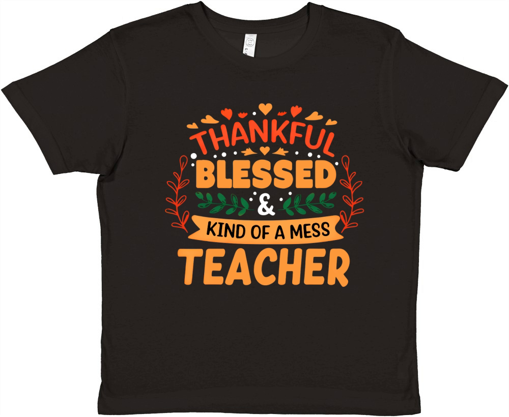 Shop Thankful Blessed & Kind Of A Mess Teacher Premium Kids Crewneck T-shirt custom made just for you. Available on many styles, sizes, and colors.