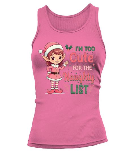 Shop Im too cute for the naughty list Tank top Woman custom made just for you. Available on many styles, sizes, and colors.