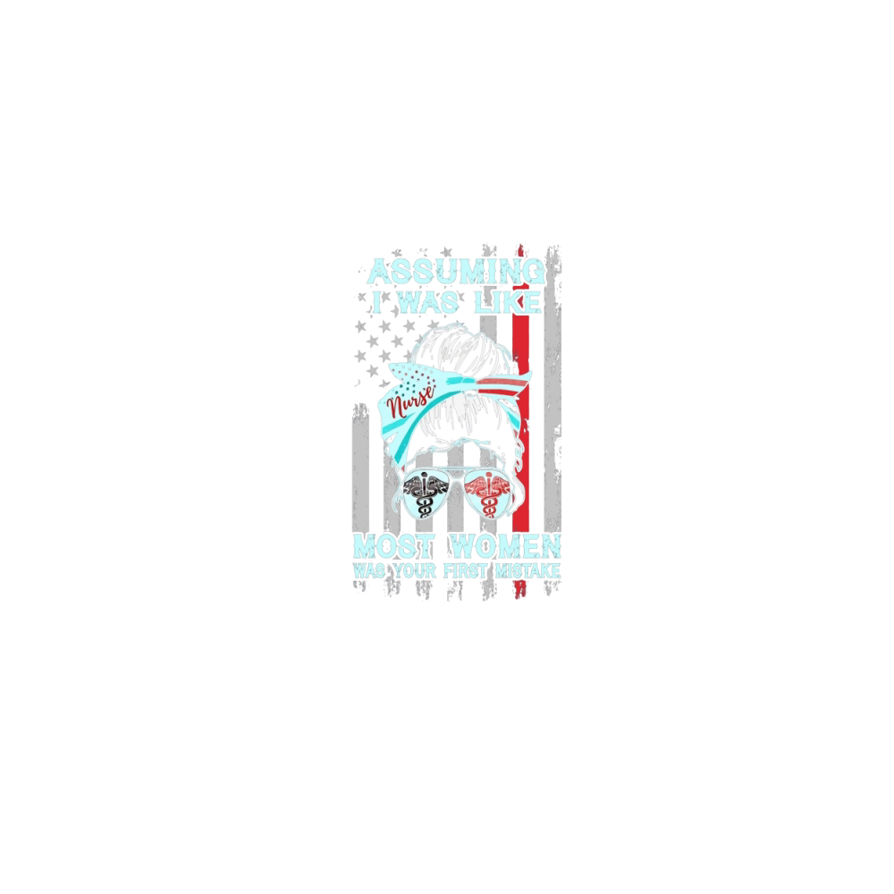 Shop American flag nurse Assuming I was like most women was your first mistake Premium Womens Crewneck T-shirt custom made just for you. Available on many styles, sizes, and colors.