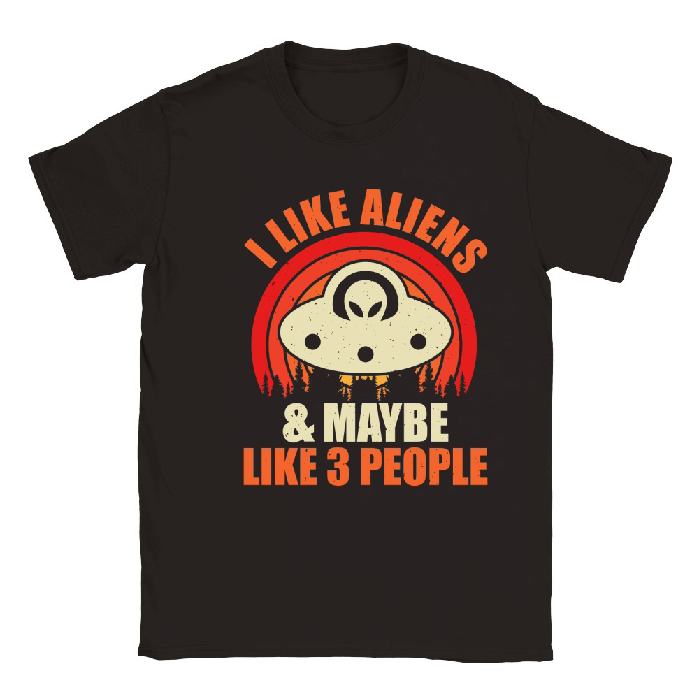 Shop Vintage UFO Alien I Likes Aliens and Maybe Like 3 People Classic Kids Crewneck T-shirt custom made just for you. Available on many styles, sizes, and colors.