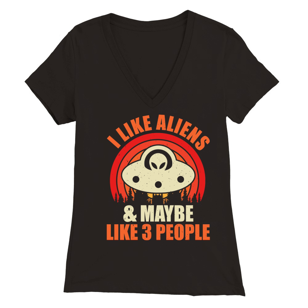Shop Vintage UFO Alien I Likes Aliens and Maybe Like 3 People Premium Womens V-Neck T-shirt custom made just for you. Available on many styles, sizes, and colors.