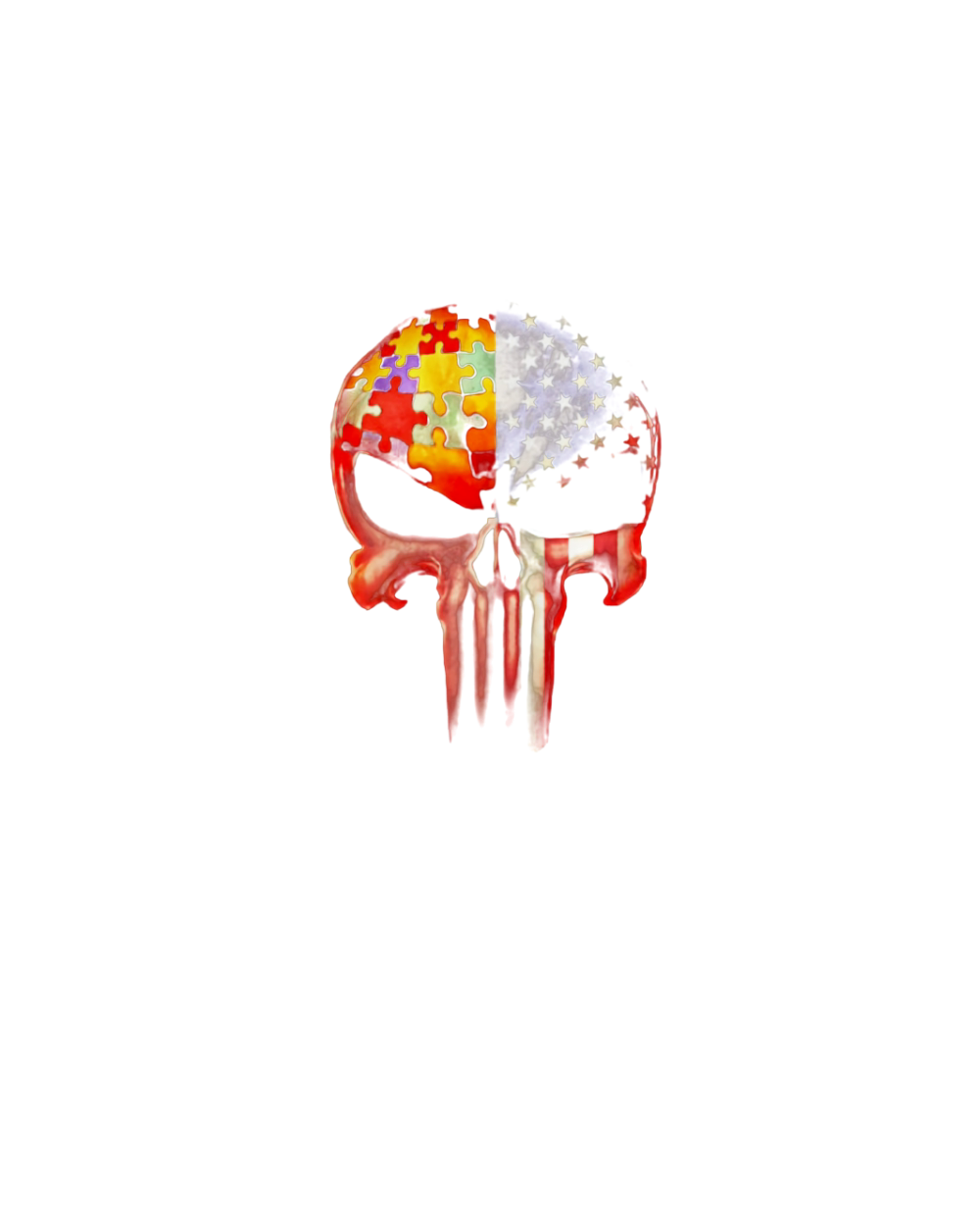 Autism Awareness America Flag skull