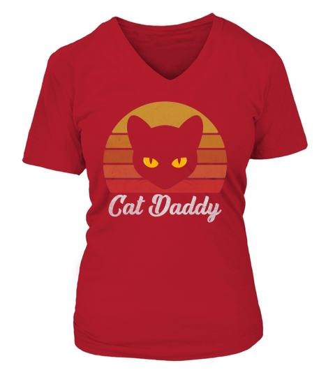Shop Cat Daddy Vintage Eighties Style Cat Retro Distressed V-neck T-Shirt Woman custom made just for you. Available on many styles, sizes, and colors.