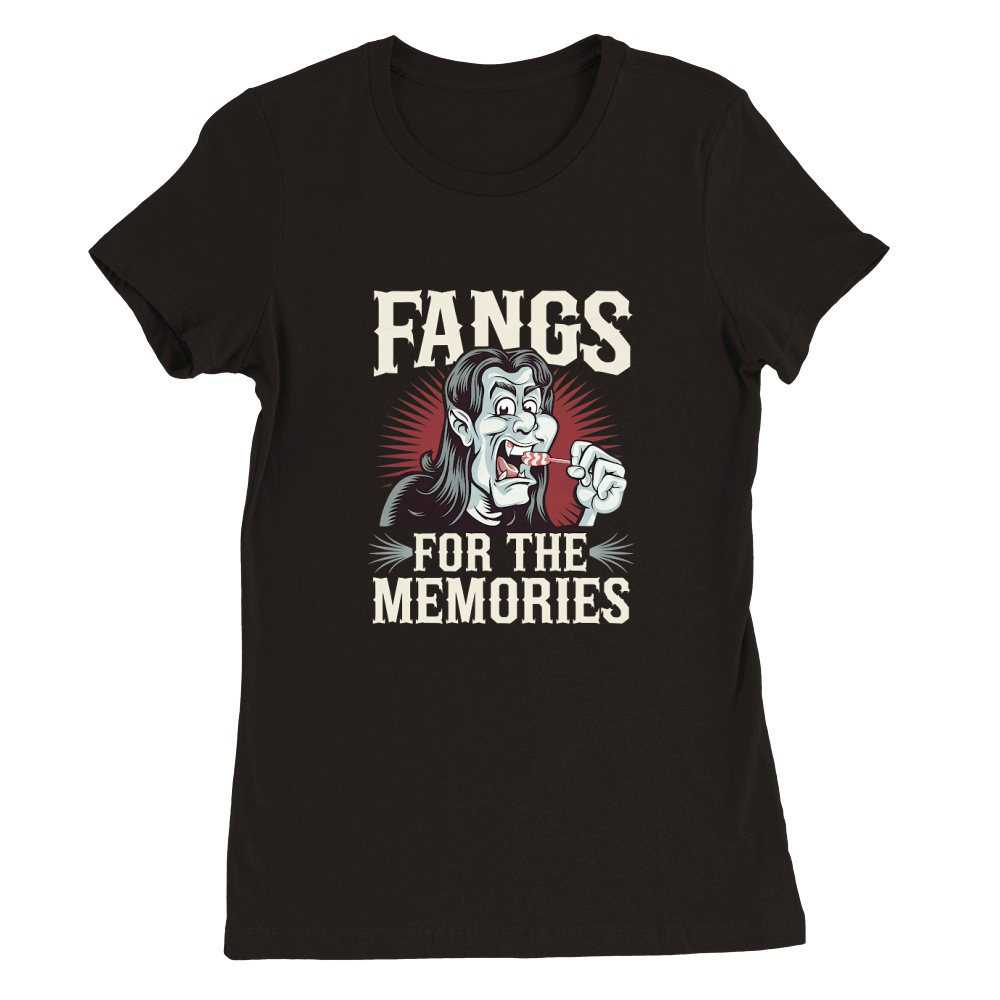 Shop FANGS FOR THE MEMORIES Premium Womens Crewneck T-shirt custom made just for you. Available on many styles, sizes, and colors.